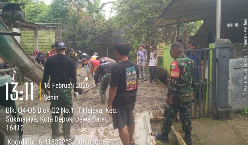 Depok- Program TMMD Ke-127 Tahun Anggaran 2026 yang digelar oleh Kodim 0508/Depok terus menunjukkan progres positif. Memasuki hari ke-6 pelaksanaan, senen (16/2/2026), sasaran pengerasan jalan…