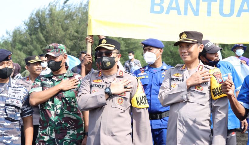 Selengkapnya... SAMBUT HUT Bhayangkara ke 76 Tahun, Kapolresta Banyuwangi bersama Masyarakat Pesisir Pantai cemara mengadakan Kegiatan pelepasan Tukik