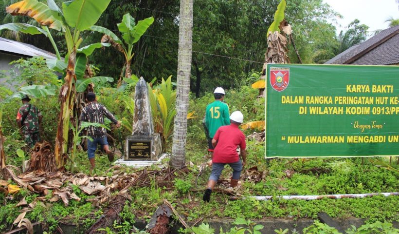Jelang HUT Ke – 64 Kodam VI/Mulawarman Kodim 0913/PPU Bersihkan Monumen Pengibaran Bendera Merah Putih Pertama Di Kaltim