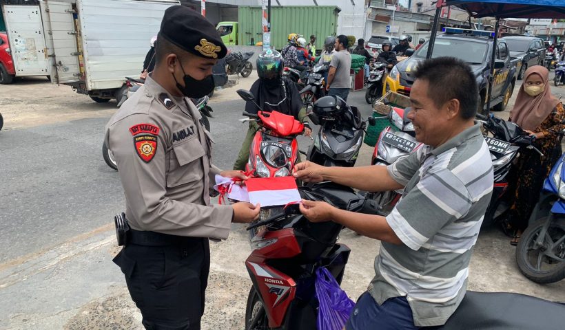 Kubu Raya,Kalbar-Dalam menyambut Hari Kemerdekaan Republik Indonesia Yang ke 77 Personel Satsamapta Polres Kubu Raya membagikan Bendera Merah Putih kepada Penguna Jalan (16/08/2022) Kasatsamapta Polres…