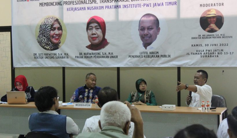 SURABAYA – Nusakom Pratama Institute bekerjasama dengan Persatuan Wartawan Indonesia (PWI) Jawa Timur menggelar Diskusi Umum dengan tema Membincang Profesionalisme, Transparansi, dan Akuntanbilitas Satgas BLBI.…