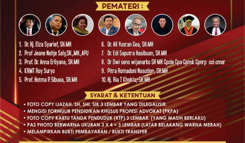 Jakarta – Perkumpulan Penasihat Dan Konsultan Hukum Indonesia (PERHAKHI) akan menyelenggarakan Pendidikan Khusus Profesi Advokat (PKPA) secara online, DPP PERHAKHI menargetkan Peserta PKPA PERHAKHI Ratusan…