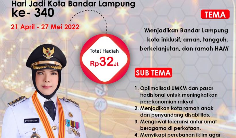 BANDAR LAMPUNG–Pemerintah Kota Bandar Lampung menggelar lomba penulisan dalam menyambut Hari Ulang Tahun (HUT) ke-22 Asosiasi Pemerintah Kota (Apeksi) mulai 21 April – 8 Mei…