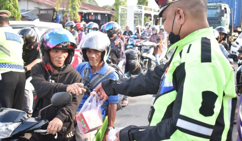 Kubu raya- Satuan Lalulintas Polres Kubu Raya Melaksanakan bhaksti social dengan memberikan takjil kepada pengendara yang melintas di jalan mayor alianyang dan di simpang empat…