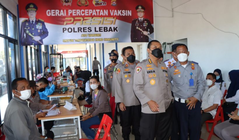 LEBAK. Kapolres Lebak Polda Banten AKBP Wiwin Setiawan,SIK,M.H. dampingi Irwasda Polda Banten Kombespol Eko Kristianto,SE,SH,MH meninjau Vaksinasi Presisi Polres Lebak di Terminal Mandala Kecamatan Cibadak…