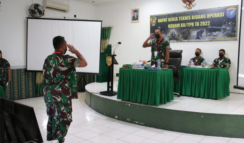 Pontianak, Jum’at (18/3/22) – Asisten Operasi Kasdam XII/Tanjungpura, Kolonel Inf Ferdial Lubis, MPICT., memimpin Rapat Kerja Teknis Bidang Operasi (Rakernisops) Kodam XII/Tpr Tahun Anggaran 2022…