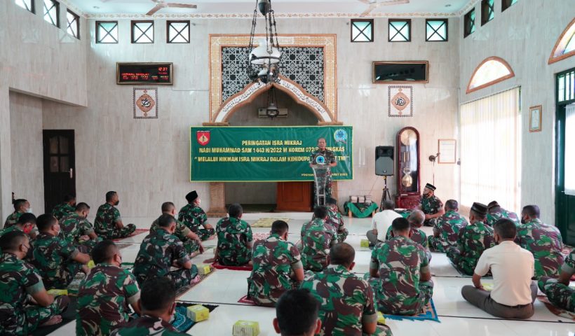 Yogyakarta – Dalam rangka meningkatkan Keimanan dan Ketaqwaan para Prajurit. Korem 072/Pamungkas menggelar peringatan Isra Mikraj Nabi Muhammad SAW 1443 H/2022 M di Masjid Al…