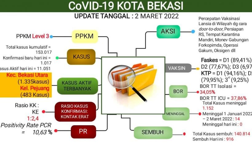 Kota Bekasi – Laporan perkembangan Covid 19 Kota Bekasi, Dinas Kesehatan Kota Bekasi mengeluarkan update pertanggal 02 Maret 2022. Kota Bekasi masuk dalam PPKM Level…