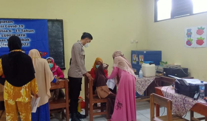 Polsek Cipanas Polres Lebak Laksanakan Vaksinasi Covid 19 bagi anak SDN 02 Desa Luhurjaya Cipanas
