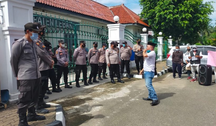 Kasat Samapta Polres Lebak Pimpin Pelaksanaan Pengamanan Aksi Unjuk Rasa di depan Kantor DPRD Lebak