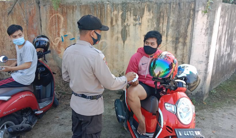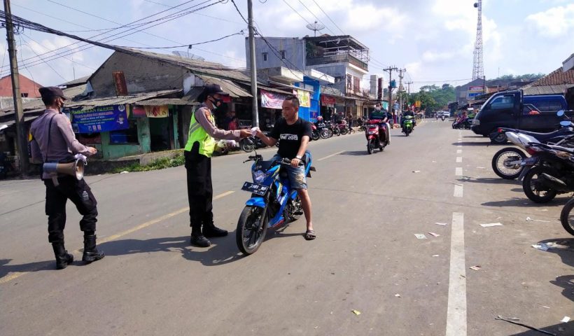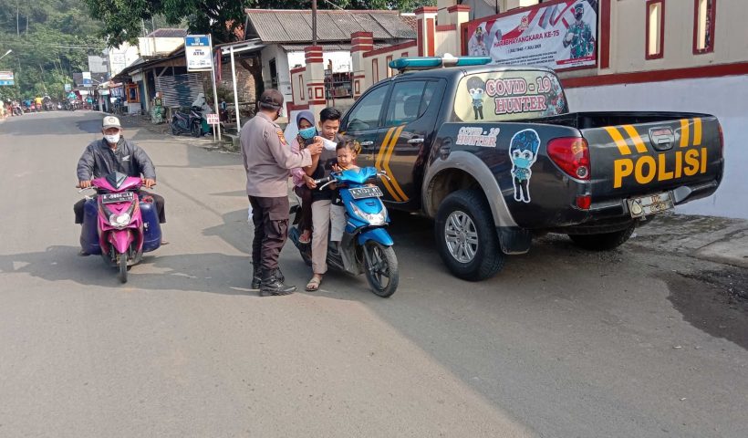 Polsek Cibadak berikan himbauan prokes dan bagikan masker serta ajak Masyarakat Vaksinasi Covid-19