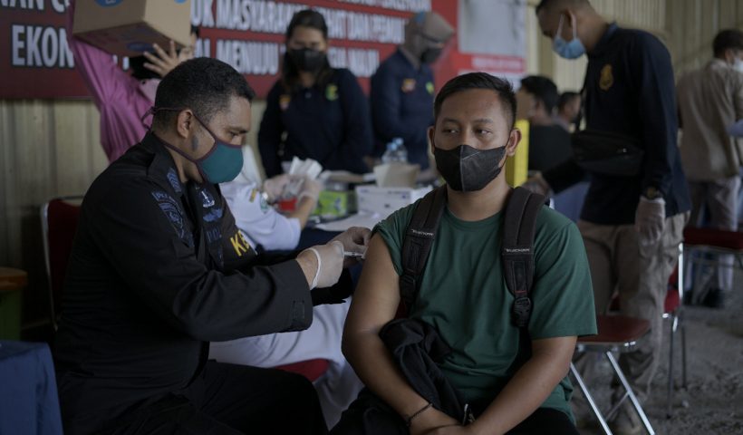 Mendukung percepatan penangan covid 19 Satbrimob Polda Kalbar kembali Melakukan Vaksinasi masal