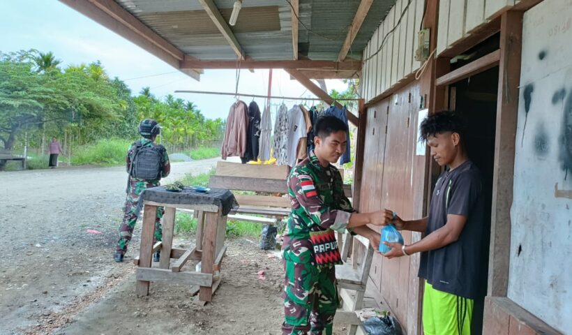 Kabupaten Keroom – Personel Satgas Pamtas RI-PNG Yonif 122/TS Pos Scofro lama yang berada dibawah naungan Kolakops Korem 172/Pwy membagikan Makanan kepada pengguna Jalan di…