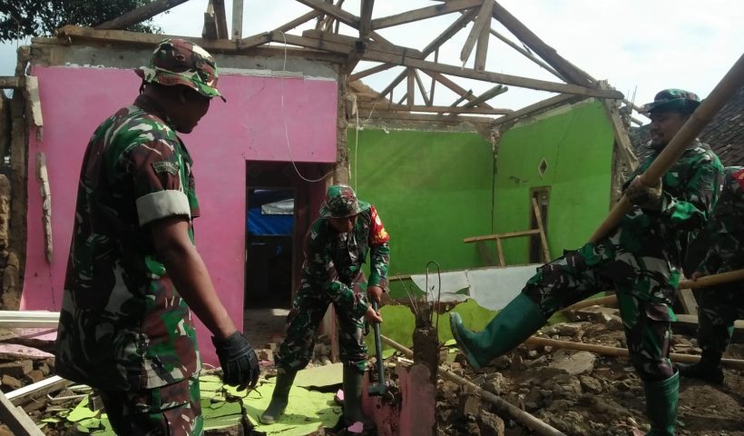 Cianjur – PK NEWS Personel Koramil 08-12/Campaka Kodim 0608/Cianjur Peltu Yogi Permana bersama dengan para anggota Koramil dan masyarakat sekitar saling bahu membahu melaksanakan pembongkaran…