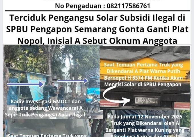 Terciduk Pengangsu Solar Subsidi Ilegal di SPBU Pengapon Semarang Gonta Ganti Plat Nopol, Inisial A Sebut Oknum Anggota Kota Semarang, Senin (12/12/2025) – Menindaklanjuti pemberitaan…