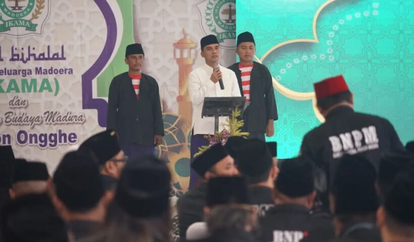 BUPATI Bangkalan, Lukman Hakim, menghadiri kegiatan Halal Bihalal yang diselenggarakan oleh Ikatan Keluarga Madura (IKAMA) di Aula Sentra Industri Kecil dan Menengah (IKM) Kabupaten Bangkalan, Minggu…