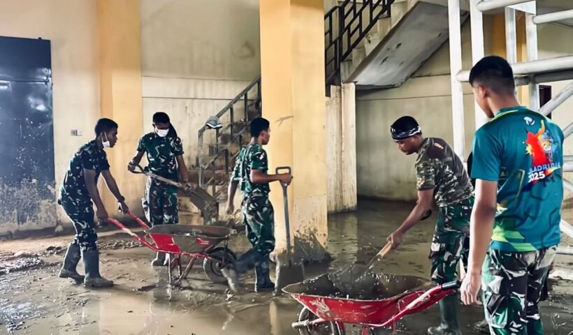 Dari Tempur ke Bantuan: Yonzipur 10 Kostrad Bersihkan Lapangan Olahraga di Aceh Tamiang Pasca Bencana