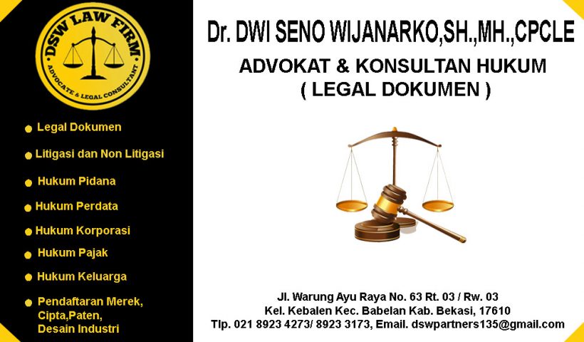 Selengkapnya... Firma Hukum DSW & Partners memutus Kemitraan dengan Kantor Cabang Bekasi.Kategori: Hukum & Politik
