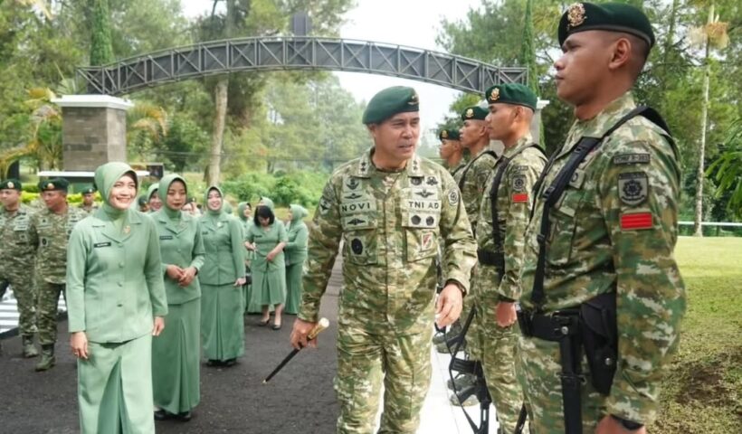 Garut – Panglima Divisi Infanteri 1 Kostrad, Mayjen TNI Novi Rubadi Sugito, bersama Ketua Persit Kartika Chandra Kirana Koorcab Divif 1 PG Kostrad, Ny. Uya…