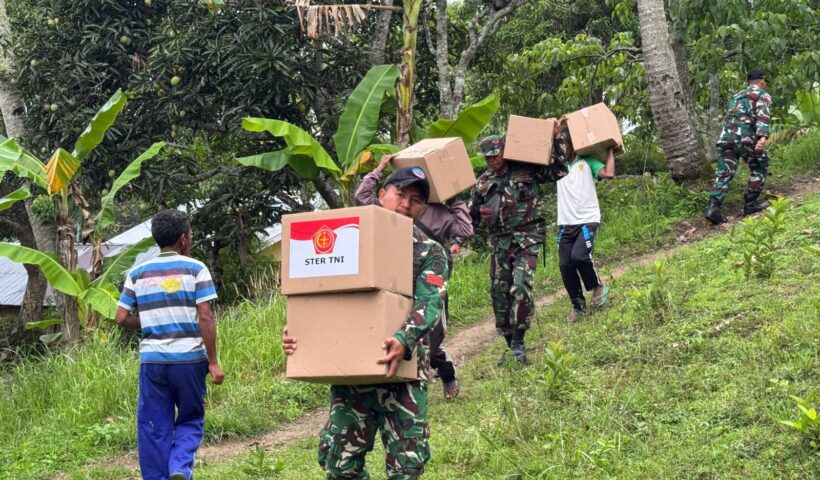 TNI Bagi Sembako di Desa Nino, TTU – Bukan Hanya Penjaga Batas Tapi Keluarga yang Peduli TTU – (31 Desember 2025) – Satuan Gasal Pengamanan Perbatasan…