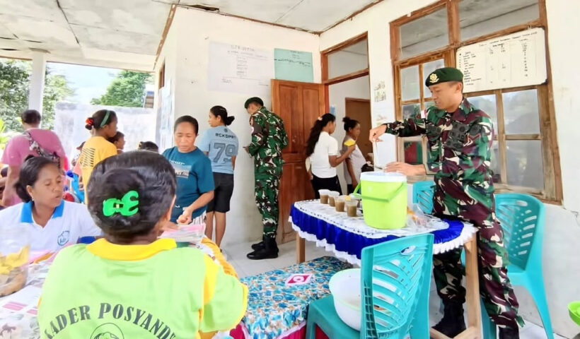 Satgas Pamtas Yonarmed 12 Kostrad: Jaga Kesehatan Anak Muda di Perbatasan – Pelayanan Posyandu di Maumutin