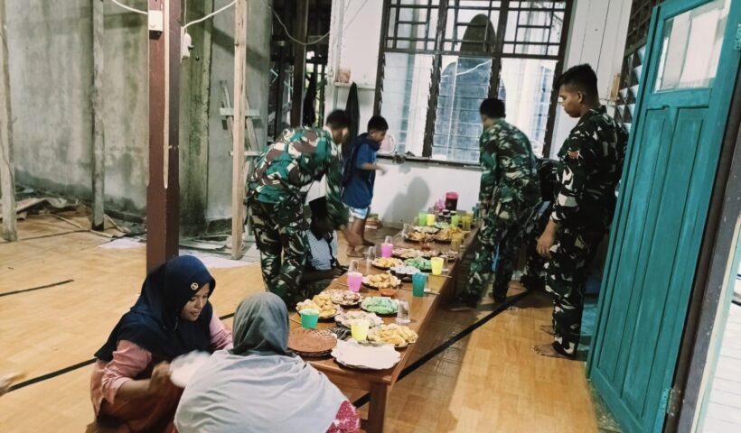 Keerom – Personel Satgas Pamtas RI-PNG Yonif 122/TS Pos Scofro membagikan takjil dan berbuka puasa bersama masyarakat di Mesjid Nurul Al-annur di Kp. Pitewi, Distrik…