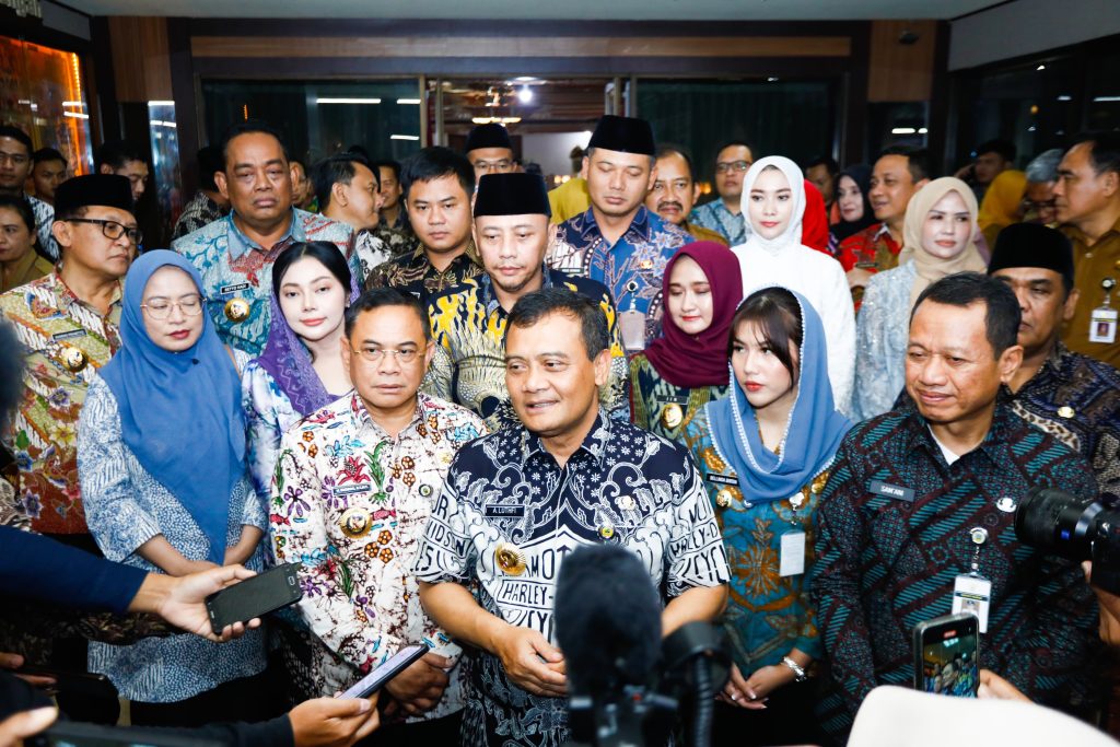 Acara yag dikemas santai dan ramah tamah itu dihadiri 35 bupati/ wali kota bersama wakilnya, plus forkopimda.