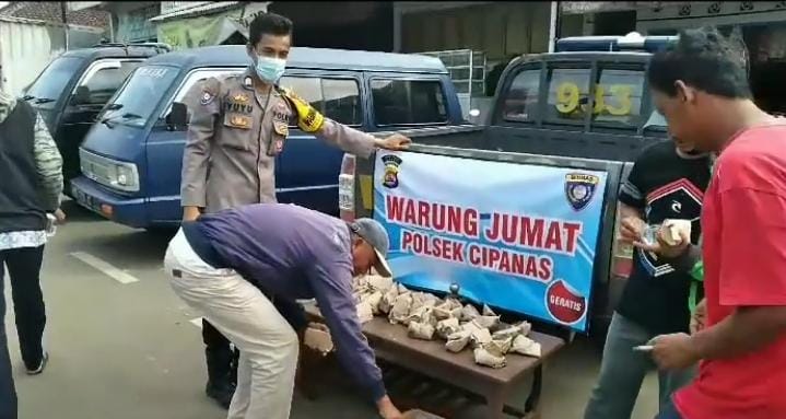 Lebak || jumat, 3 Juni 2022 dalam rangka jelang hut POLRI Anggota Polsek Cipanas Polres Lebak melaksanakan Kegiatan Warung Jumat dengan membagikan nasi bungkus secara cuma-cuma kepada masyarakat yang berada di wilayah pasar gajrug kec.cipanas,
