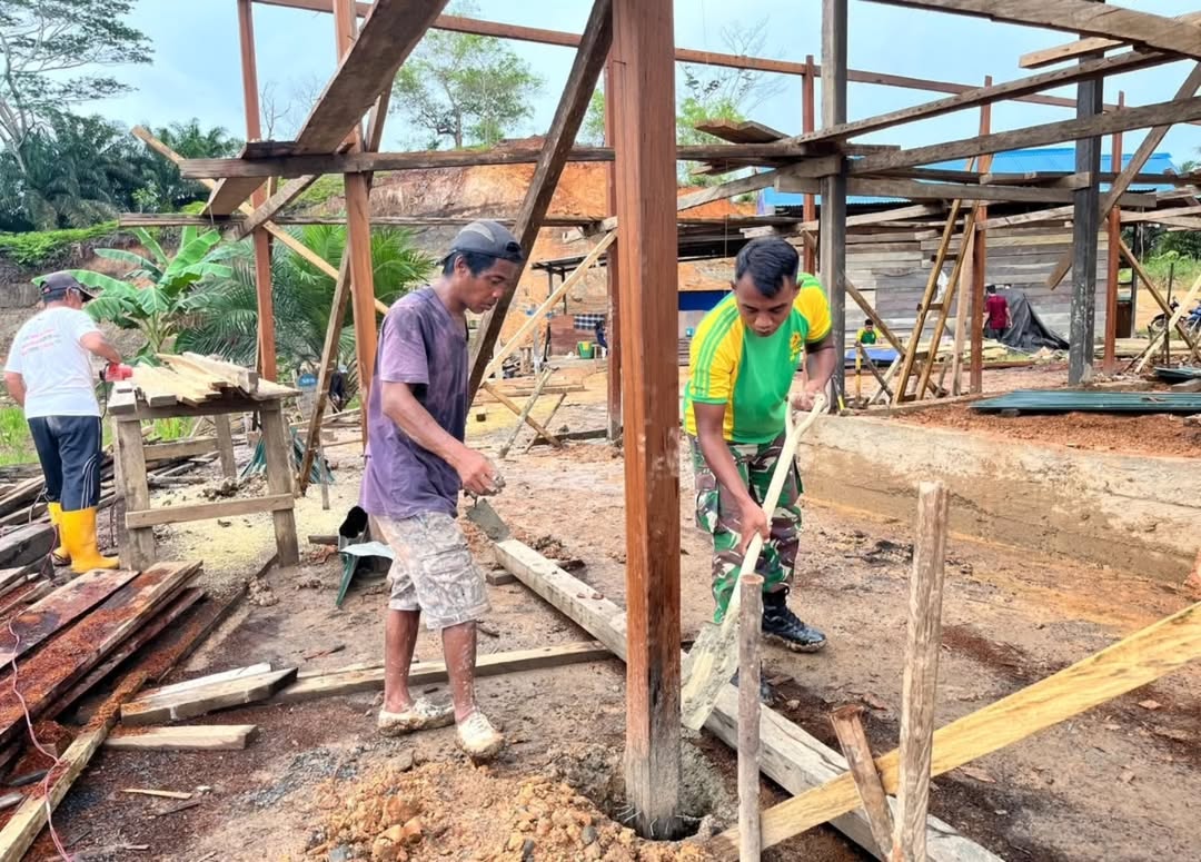 Nunukan – Kebersamaan dan semangat gotong royong kembali diperlihatkan oleh personel Satuan Tugas Pengamanan Perbatasan (Satgas Pamtas) Yonarmed 11 Kostrad Pos Simanggaris Lama bersama masyarakat dalam pembangunan mushola di Desa Tabur Lestari, Kecamatan Simanggaris, Kabupaten Nunukan. Rabu (12/2 2025).
