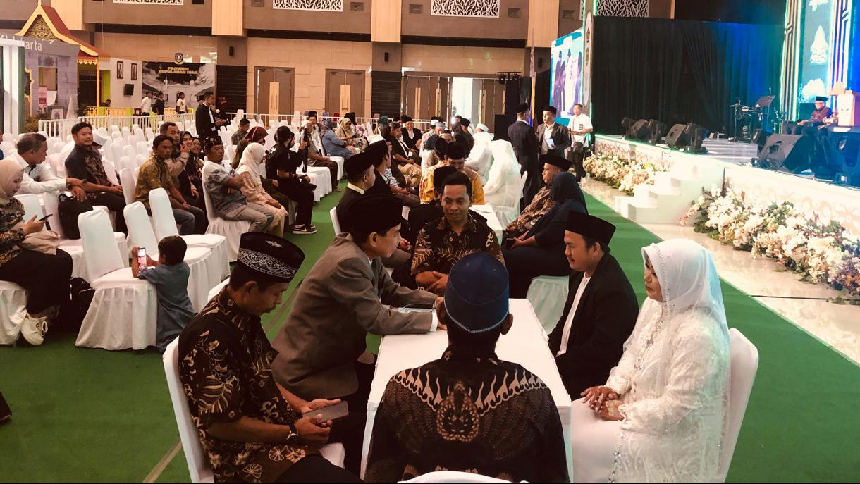Prosesi pernikahan disaksikan oleh Kakanwil Kemenag Kalimantan Timur Abdul Khaliq, keluarga masing-masing pasangan, serta pengunjung Expo MTQ Nasional.
