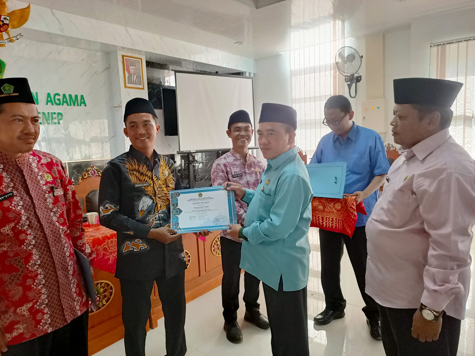 SUMENEP, PELITAKOTA.ID Guna memastikan arah kiblat tempat ibadah telah sesuai dengan standar syariat, Kantor Kementerian Agama (Kemenag) Kabupaten Sumenep secara resmi menyerahkan sertifikat arah kiblat kepada 135 masjid dan musalla yang tersebar di seluruh wilayah Kabupaten Sumenep, Senin (26/08/2024).