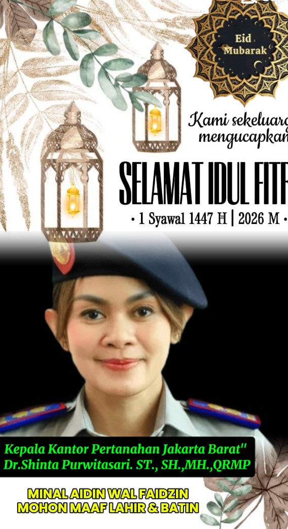 Kepala Kantor Pertanahan Jakbar” Dr.Shinta Purwitasari. ST., SH.,MH .,QRMP Beserta Jajaran Ucapkan” Selamat Hari Raya Idul Fitri 1447.H