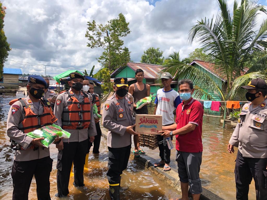 Membantu sesama yang membutuhkan uluran tangan merupakan implementasi dari program peduli sosial Polres Sekadau dalam menyikapi perkembangan terkini, termasuk bencana alam banjir yang merendam perumahan dan jalan.