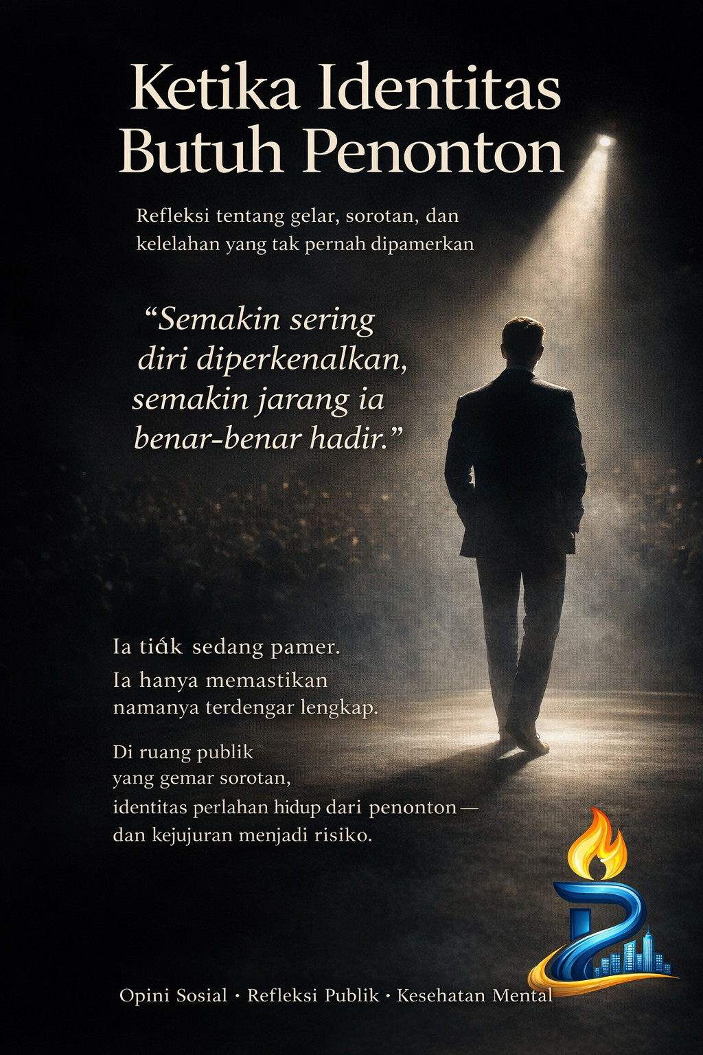 Dalam ruang publik hari ini, pengakuan perlahan berubah menjadi mata uang. Nilai diri tidak lagi berdiri pada kedalaman gagasan, melainkan pada seberapa sering nama disebut, seberapa terang sorotan diarahkan, dan seberapa meyakinkan citra dirawat. Di titik ini, identitas tak cukup berdiri sendiri—ia membutuhkan penonton.