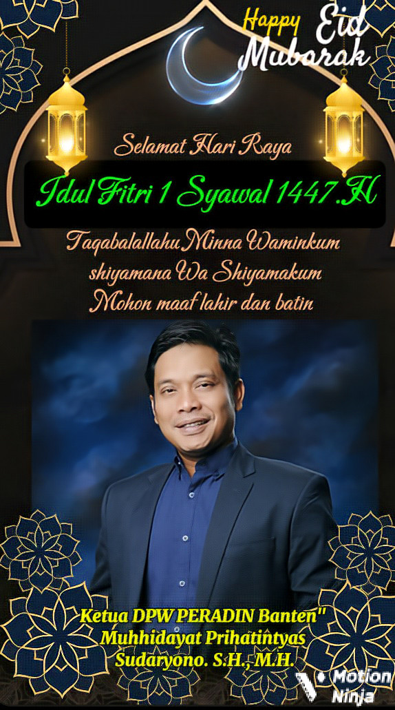 TANGERANG – Ketua DPW PERADIN Banten” Muhhidayat Prihatintyas Sudaryono. S.H., M.H, menyampaikan ucapan Selamat Hari Raya Idul Fitri 1447 Hijriah kepada seluruh masyarakat Indonesia.