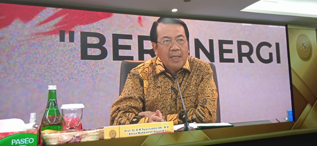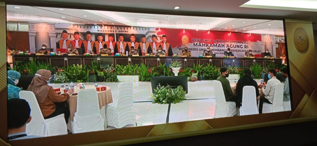 Jakarta – pelitakota.id Senin, 3 January 2022 di ruang kerja Ketua Mahkamah Agung RI, YM. Prof. Dr. H. H.M. Syarifuddin, S.H., M.H., didampingi Wakil Ketua Mahkamah Agung bidang Non Yudisial YM. Dr. H. Sunarto, S.H., M.H., menerima penyerahan finalisasi Template Putusan pada Kamar Tata Usaha Negara yang diserahkan langsung oleh Ketua Kamar Tata Usaha Negara YM. Prof. Dr. H. Supandi, S.H., M.Hum. beserta Tim dari Pengadilan Tinggi TUN dan Tim dari Pengadilan Pajak.