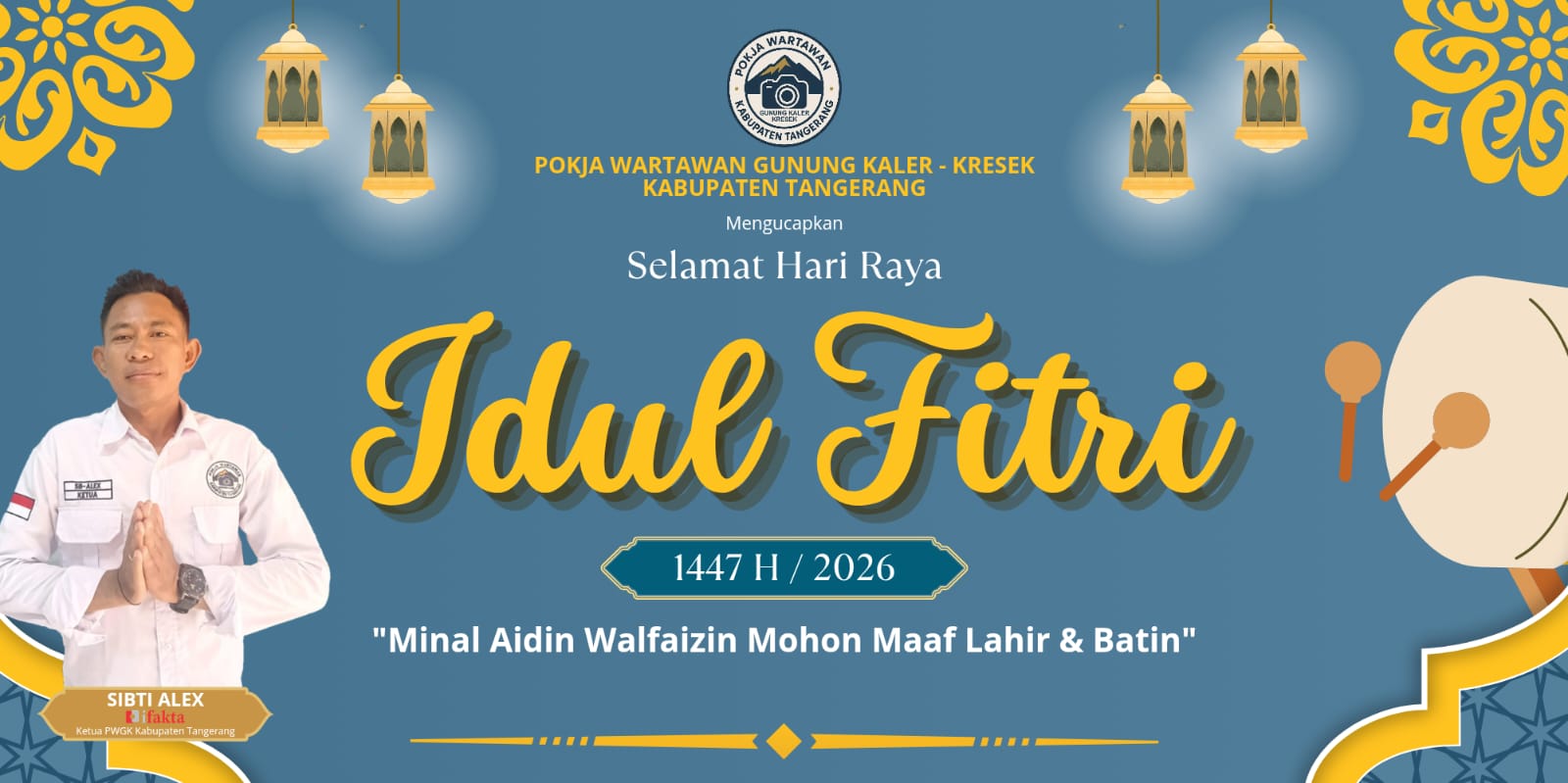 TANGERANG – Ketua Pokja Wartawan Gunung Kaler-Kresek (PWGK-Kresek) Kabupaten Tangerang, Alex Sibti yang juga merupakan jurnalis ifakta.co, menyampaikan ucapan Selamat Hari Raya Idul Fitri 1447 Hijriah kepada seluruh masyarakat Indonesia.