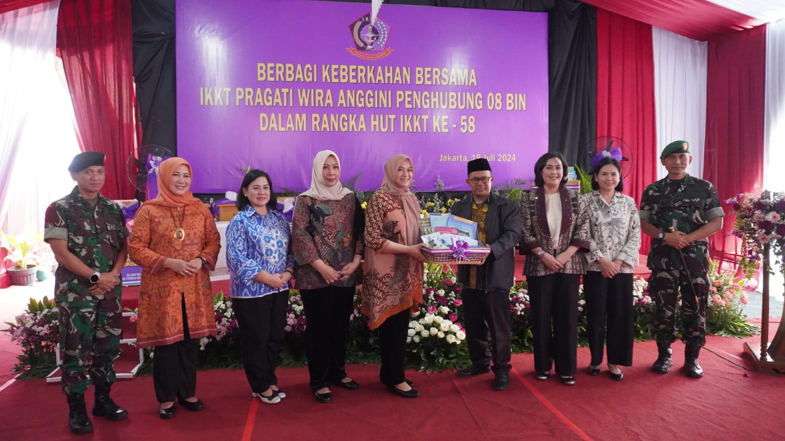 Depok – Kunjungan Ketua Umum (Ketum) Ikatan Kesejahteraan Keluarga TNI (IKKT) Pragati Wira Anggini (PWA) Ny. Evi Agus Subiyanto di sekolah Master Indonesia Depok, dalam rangka HUT IKKT ke 58 di sekolah Master Indonesia Depok, Jumat (19/07/2024).
