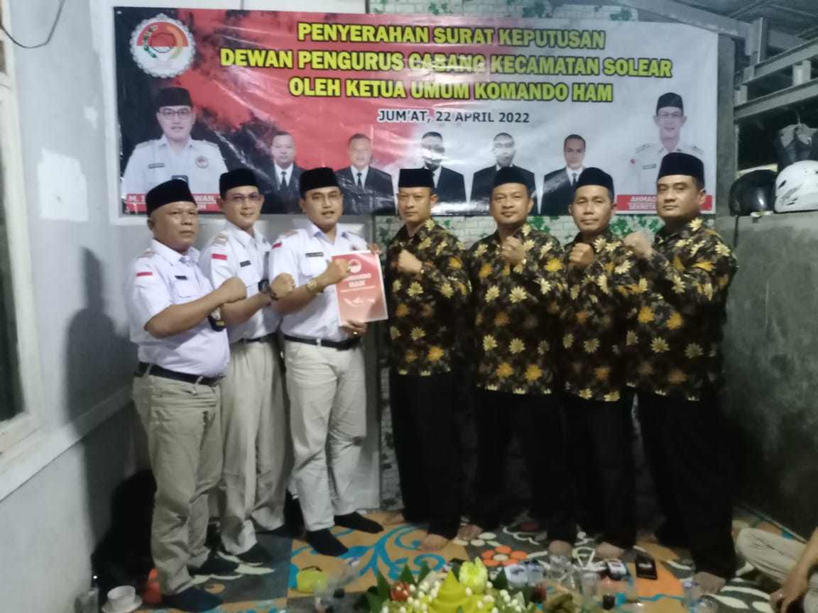 Tangerang – KOMANDO HAM Cabang Kecamatan Solear menerima SK (Surat Keputusan) Nomor : 003/KHAM/IV/2022 , Tentang Pengangkatan Kepengurusan Dewan Pengurus Cabang Kecamatan Solear Masa Periode 2022 – 2027.
