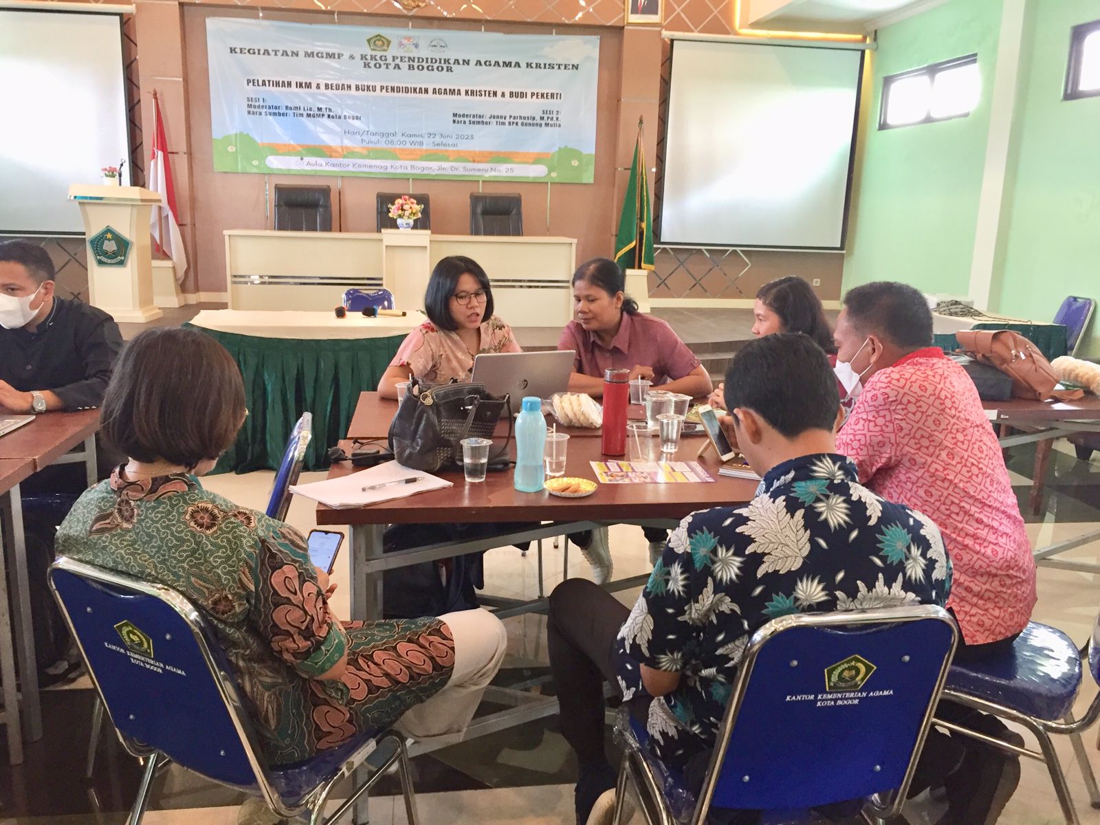 Kota Bogor – Pelitakota.id KKG Bersama MGMP Pendidikan Agama Kristen Kota Bogor laksanakan Bedah Buku Kurmer Pendidikan Agama Kristen Budi Pekerti disertai Pelatihan IKN,Acara yang dilaksanakan di kantor Kementerian Agama Kota Bogor pada hari kamis,22 Juni 2023.