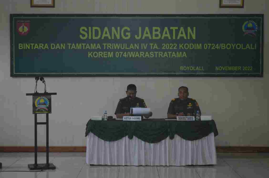 Boyolali – Dandim 0724/Boyolali Letkol Arm Ronald F Siwabessy, M.A. yang diwakili Kepala Staf Kodim (Kasdim) 0724/Boyolali Mayor Inf Ismael, Sos memimpin langsung acara Sidang Panitia Pangkat dan Karier (Pankar) usul jabatan bagi anggota Bintara dan Tamtama Kodim 0724/Boyolali Triwulan IV Tahun 2022.