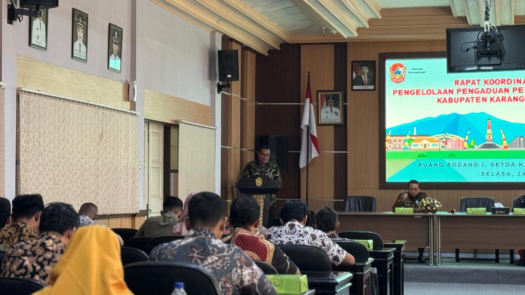 KARANGANYAR- Dinas Kominfo Kabupaten Karanganyar menggelar Rapat Koordinasi Pengelolaan Pengaduan Pelayanan Publik di Ruang Podang I Setda Karanganyar, Selasa (24/9). Kegiatan ini untuk meningkatkan kolaborasi dan sinergitas antar pihak terkait aduan sehingga keputusan dapat segera diambil pimpinan sebagai salah satu upaya menumbuhkan kepercayaan masyarakat atas kinerja Pemerintah.