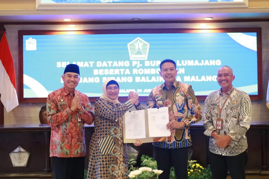 Hal tersebut diungkapkan oleh Pj. Bupati Lumajang Indah Wahyuni dalam acara Penandatanganan Kesepakatan Bersama antara kedua pemerintah daerah tentang Penyelenggaraan Urusan Pemerintahan, yang berlangsung di Ruang Sidang Balai Kota Malang, Jumat (21/6/2024).