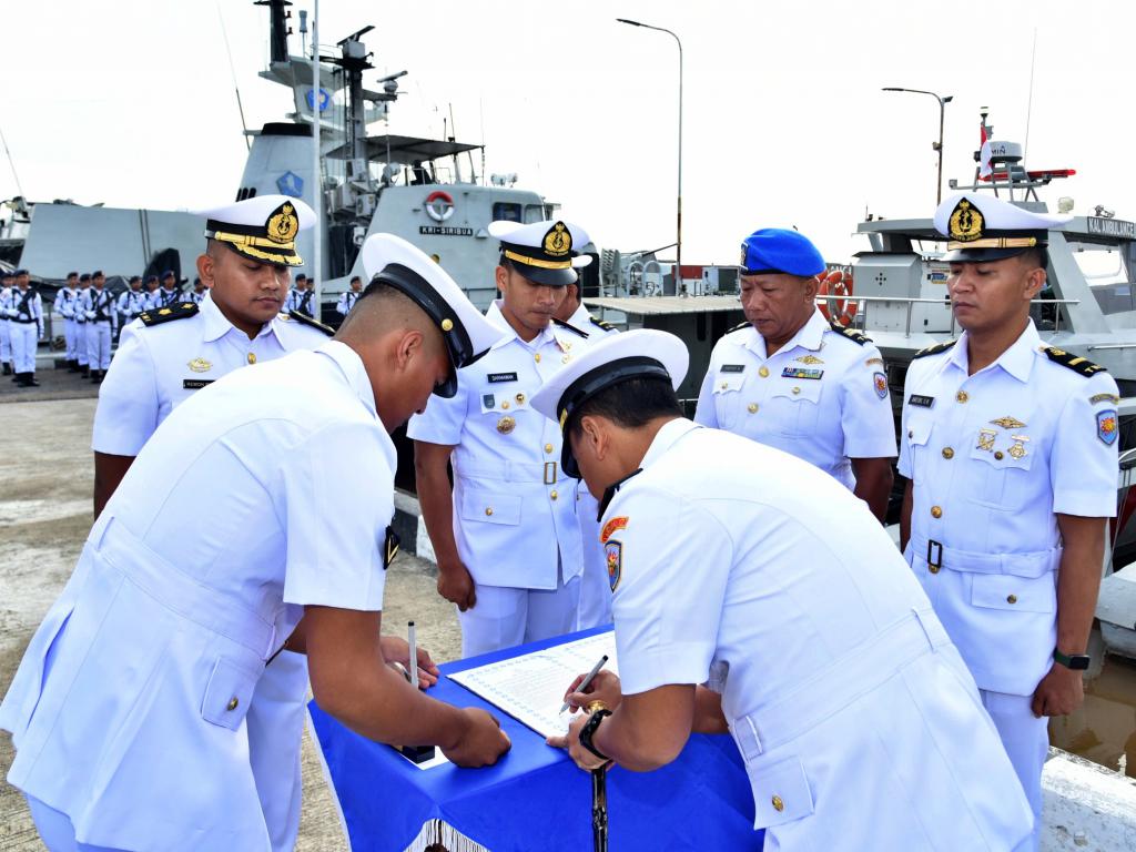 Pontianak – Komandan Satuan Kapal Patroli (Dansatrol) Lantamal XII Letkol Laut (P) Ainul Muslimin memimpin Upacara Serah Terima Jabatan (Sertijab) Komandan Kapal Perang Republik Indonesia (KRI) Siribua-859 yang dilaksanakan di Dermaga Satrol Lantamal XII, Jl. Komodor Yos Sudarso No. 1, Kota Pontianak, Kalimantan Barat, Kamis (05/09/2024).