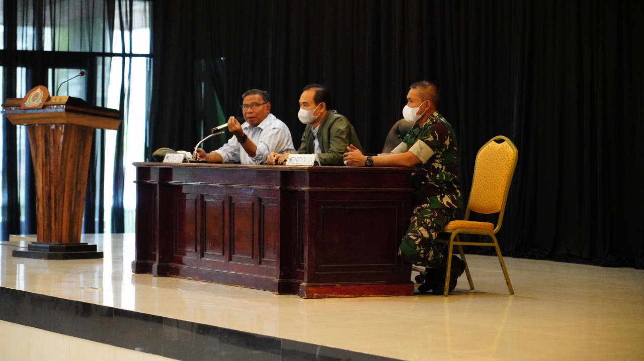 Kasrem 091/ASN Kolonel Inf. Triyono,S.Sos dalam sambutanya menyampaikan “Kami mewakili bapak Danrem 091/ASN dalam kegiatan Penelitian Desertasi ini, beliau saat ini ada kegiatan di Jakarta, kami mengucapkan selamat datang kepada para rombongan Penelitian Desertasi di Makorem 091/ASN”.
