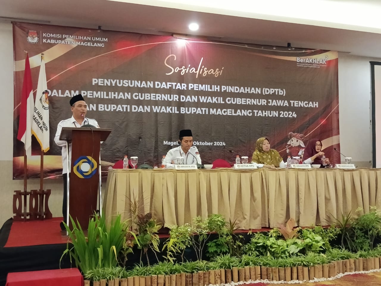“Pilkada kali ini berbeda dengan Pilpres. Pilkada kami hanya melayani pindah pilih untuk KTP dari Jawa Tengah saja. Kalau Pilpres kemarin kan bisa KTP seluruh Indonesia,” demikian disampaikan Ahmad Rofik saat Sosialisasi Penyusunan Daftar Pemilih Pindahan (DPTb) dalam Pemilihan Gubernur dan Wakil Gubernur Jawa Tengah serta Bupati dan Wakil Bupati Magelang di Grand Artos Hotel Magelang, Senin (7/10/2024).