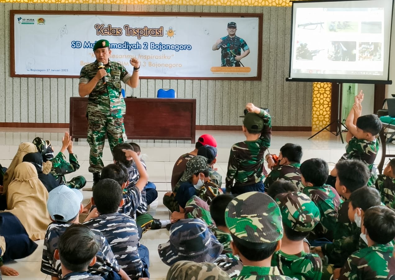 BOJONEGORO, PK NEWS – Markas Komando Distrik Militer (Kodim) 0813 Bojonegoro, Jawa Timur, yang berada di Jalan Hos Cokroaminoto Bojonegoro, pagi ini Jum’at (27/1/2023), mendapat kunjungan kelas inspirasi puluhan anak-anak dari Sekolah Dasar (SD) Muhammadiyah II Bojonegoro.