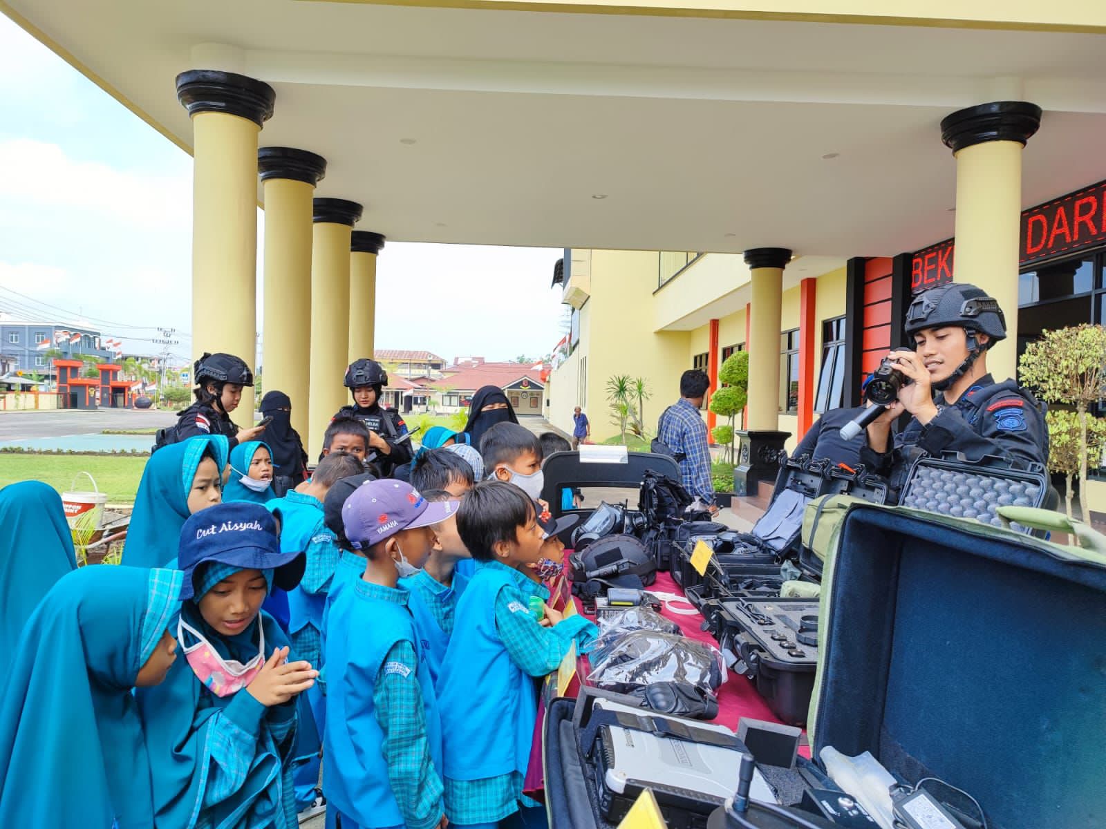 Satbrimob Polda Kalbar kembali menerima kunjungan dari anak usia dini murid-murid dari Sekolah Islam Muhammad Al-Fatih Pontianak. Kunjungan murid-murid Sekolah Islam Muhammad Al-Fatih di Ksatriaan Soemarto pada hari ini dalam rangka wisata juang sebagai sarana edukasi murid-murid bersama dengan personel Satbrimob Polda Kalbar. Kunjungan murid-murid di Mako Satbrimob disambut oleh personil Satbrimob Polda Kalbar untuk kemudian diberikan penjelasan tentang tugas dan fungsi Brimob. Murid-murid mendapat kesempatan untuk melihat secara langsung almatsus dan juga kendaraan dinas yang setiap harinya digunakan oleh Satbrimob Polda Kalbar dalam melaksanakan tugas sehari-hari. Selain melihat secara langsung almatsus dan kendaraan dinas disini murid-murid Sekolah Islam Muhammad Al-Fatih juga berkesempatan mencoba hingga menaiki kendaraan dinas yang dimiliki oleh Satbrimob Polda Kalbar. Dansatbrimob Polda Kalbar Kbp. M. Guntur, S.I.K., M.H. juga mengatakan kunjungan murid-murid Sekolah Islam Muhammad Al-Fatih Pontianak di Ksatriaan Soemarto ini juga merupakan salah satu bentuk upaya untuk mengenalkan lebih dekat tentang fungsi dan peran Brimob kepada mereka.