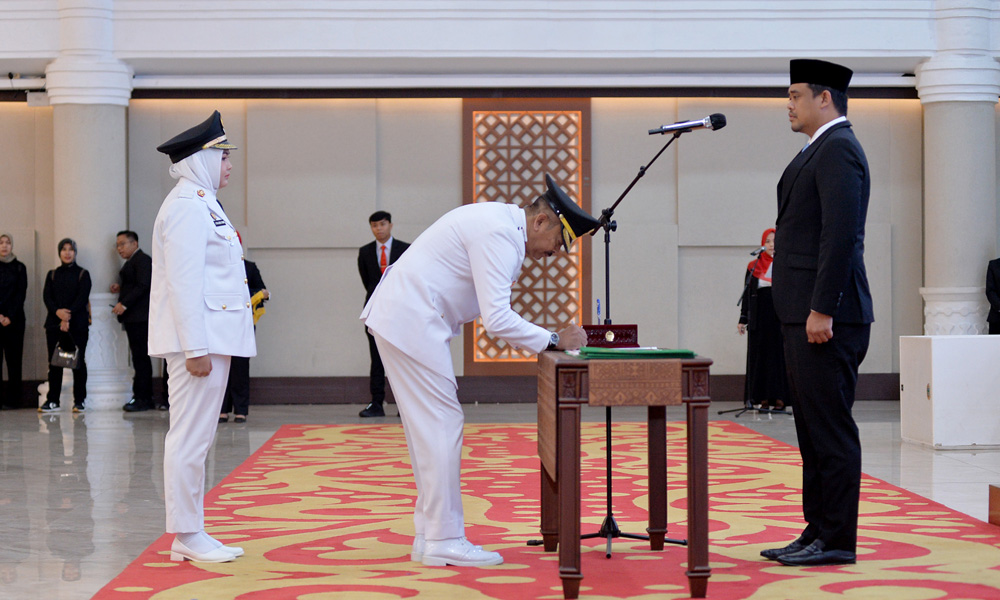 MEDAN, 21/3 – Gubernur Sumatera Utara (Sumut) Muhammad Bobby Afif Nasution melantik Saipullah Nasution dan Atika Azmi Utammi, sebagai Bupati dan Wakil Bupati Mandailingnatal (Madina). Kepada keduanya, Bobby Nasution mengingatkan agar menjadikan kesejahteraan masyarakat menjadi landasan bekerja.