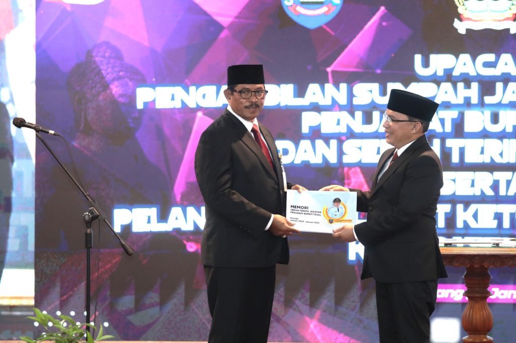 SEMARANG – Penjabat (Pj) Gubernur Jawa Tengah Nana Sudjana secara resmi melantik Amir Makhmud menjadi Pj Bupati Tegal menggantikan Agustyarsyah, di Gradhika Bhakti Praja, Selasa (21/1/2025). Dalam acara tersebut sekaligus dilakukan pelantikan Pj Ketua TP PKK Kabupaten Tegal, Yuli Isnaini Amir Makhmud, oleh Pj Ketua TP PKK Jawa Tengah Shinta Nana Sudjana.
